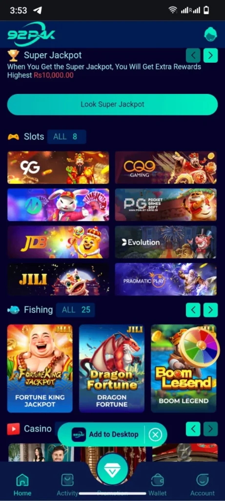 This new earning app stands out with its user-friendly design and secure transactions. Unlike other platforms, 92 PAK keeps things simple, with no hidden tricks. It supports local payment methods like JazzCash and Easypaisa, making it accessible. From slots to sports betting, there’s something for everyone. Ready to dive in and start earning?